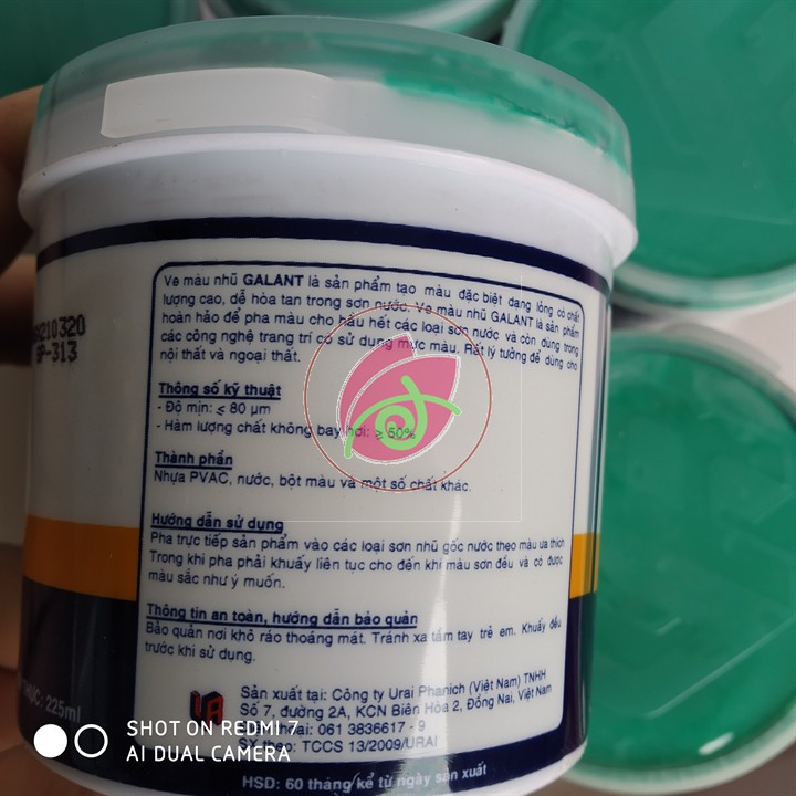 Ve màu Galant pha sơn nướcVe màu " GALANT " được đặc chế từ lọai chất màu cô đặc có chất lượng cao , là thành phẩm hòan hảo dùng để pha màu cho hầu hết các lọai sơn, và còn dùng trong công nghệ trang trí có sử dụng màu . Rất lý tưởng để dùng cho cả nội thất và ngọai thất, với độ kết dính tuyệt vời và có tính năng chống nấm, mốc.