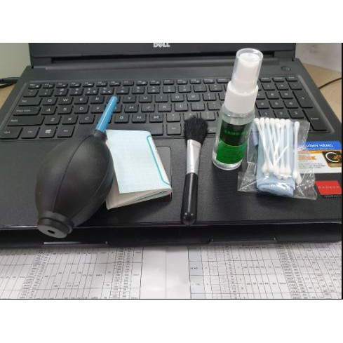Bộ vệ sinh laptop cao cấp 6 món sẽ giúp bạn chăm sóc chiếc máy tính kỹ càng hơn đến từng mm.- Bộ vệ sinh laptop gồm 6 món tiện dụng: dụng cụ thổi bụi, chổi quét, nước lau màn hình, khăn lau, giấy thấm màn hình, tâm bông.