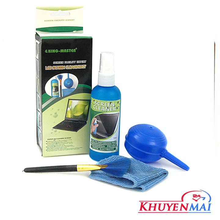 - Gồm:Cọ, khăn lau chuyên dụng, dụng cụ thổi bụi, nước rửa màn hình.