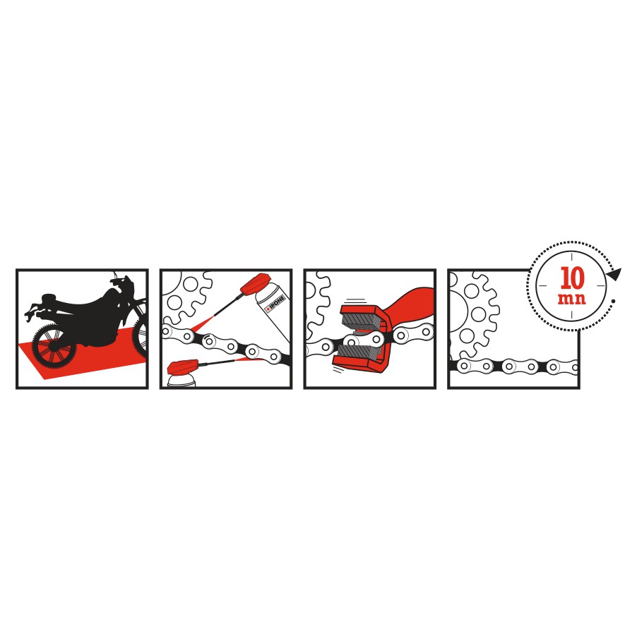 Và với bàn chải: sạch dây sên/xích của bạn một cách nhanh chóng và dễ dàng, đồng thời giảm tiêu thụ chất tẩy dầu mỡ của bạn!
