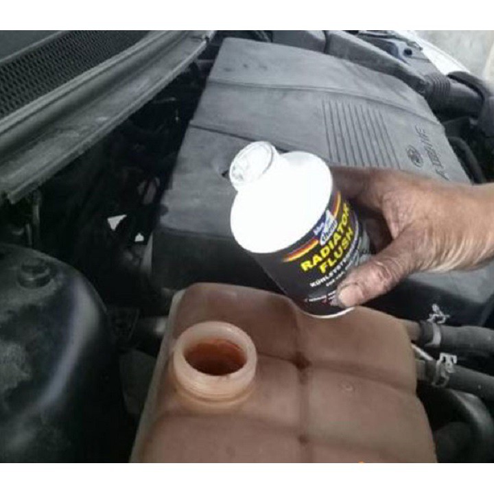 - Mỗi khi thay nước làm mát, cho Radiator Flush vào chung với nước làm mát cũ, khởi động máy tại chỗ hoặc di chuyển, cho nổ 15-20 phút để làm sạch, sau đó xả bỏ toàn bộ nước làm mát và dung dịch.