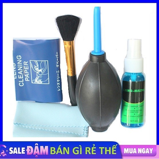 Bộ dụng cụ gồm 6 món: dụng cụ thổi bụi, chổi quét, nước lau màn hình, khăn lau, giấy thấm màn hình, tâm bông sẽ giúp chiếc laptop luôn sạch sẽ như mới.