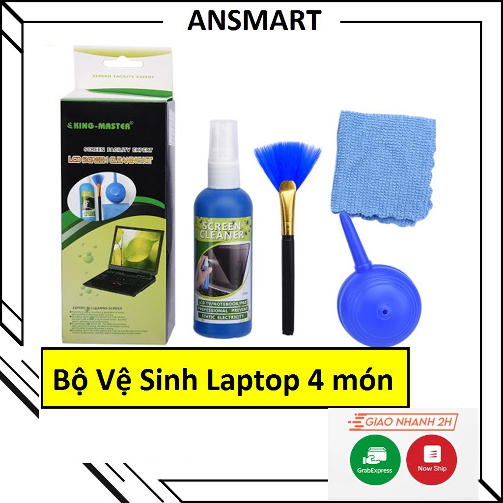 Bộ vệ sinh laptop King Master 4 món bao gồm 1 chổi quét, 1 thổi bụi, 1 chai dung dịch làm sạch và 1 miếng vải lau siêu thấm sẽ giúp nhanh chóng mang lại vẻ ngoài như mới cho chiếc laptop của bạn.Chổi quét và dụng cụ thổi bụi nhỏ gọn sẽ giúp bạn nhanh chóng làm sạch các bụi bẩn bám trên bàn phím, cạnh màn hình và các góc cạnh của laptop.
