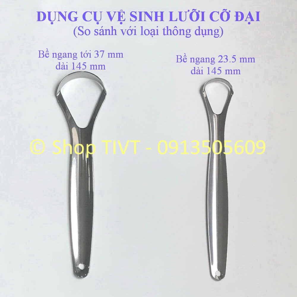 Dụng cụ nạo lưỡi cỡ đại: dài 14,5 cm, rộng 3,7 cm