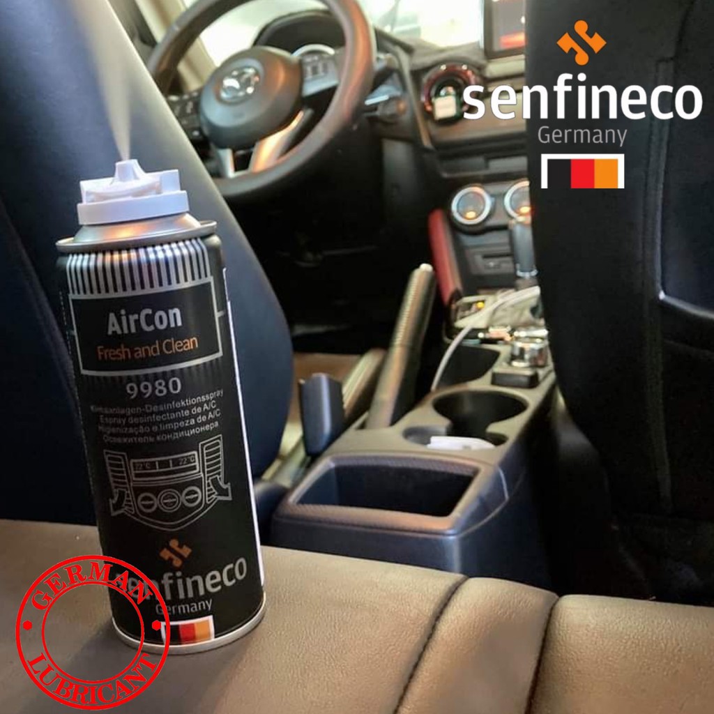 Xử lý không khí sạch, tươi mát và tạo mùi hương trong xe ô tô senfineco 9980, 200ml là sản phẩm loại bỏ mùi khó chịu do vi khuẩn và nấm mốc gây ra trong hệ thống điều hòa không khí, ống thông gió hoặc nội thất trong xe ô tô trong vòng vài phút.