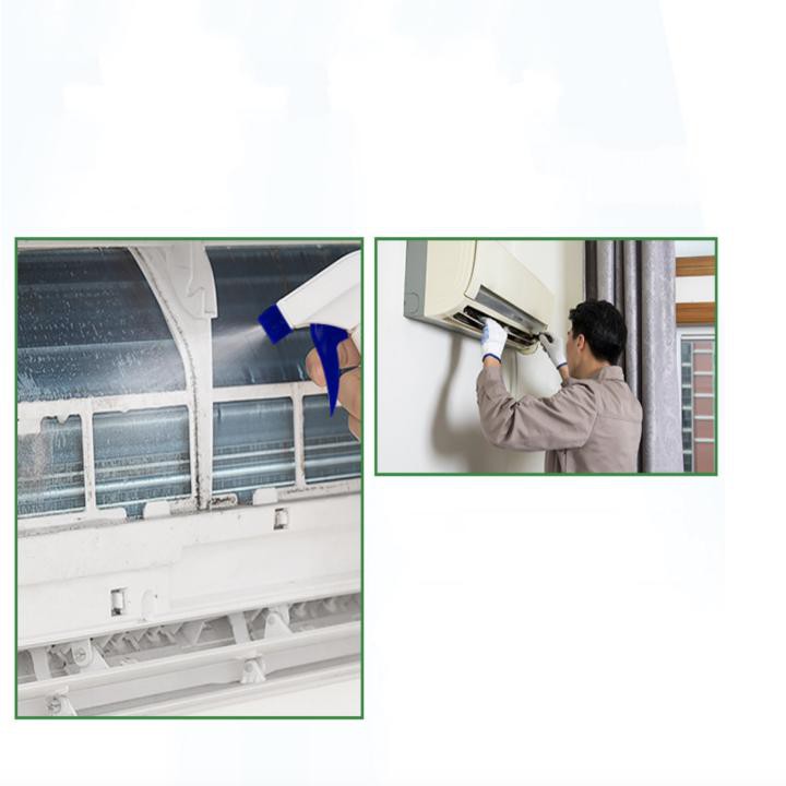 Hướng dẫn sử dụng: Tắt điều hòa, rút điện ra. Mở mặt trước của mặt lạnh điều hòa, tháo tấm lưới lọc bụi ra rửa sạch với nước, kết hợp với dùng bàn chải mềm để làm sạch các góc cạnh. Dùng chai xịt để xịt lên toàn bộ bề mặt dàn lạnh ở khoảng cách khoảng 5cm. Sau đó đợi 10 phút cho chất tẩy rửa thấm vào và tiêu diệt vi khuẩn. Cuối cùng đóng nắp mặt lạnh lại, các chất bụi bẩn sẽ được rửa sạch hoàn toàn theo đường ống dẫn nước thải.