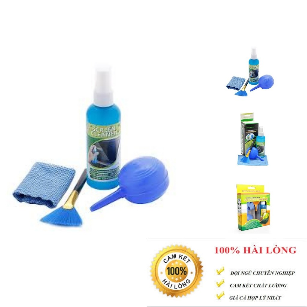 - Gồm: Cọ, khăn lau chuyên dụng, dụng cụ thổi bụi, nước rửa màn hình.