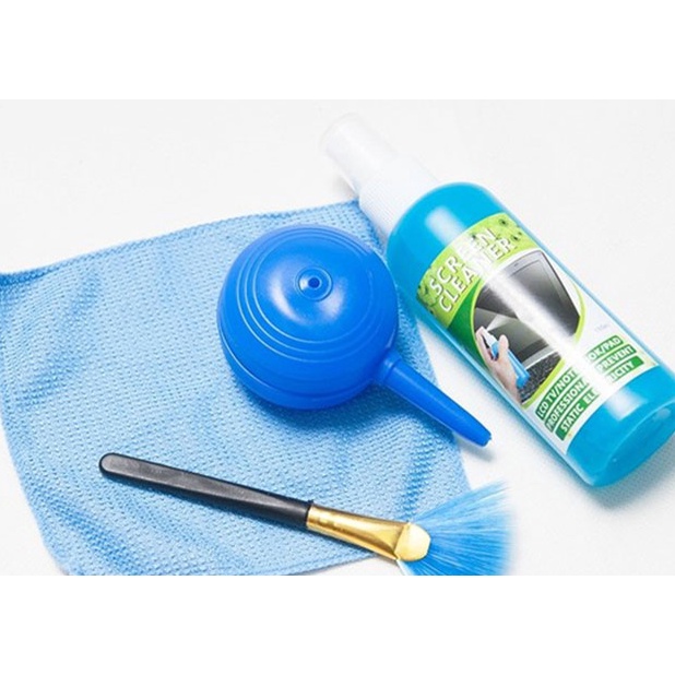 - Gồm:Cọ, khăn lau chuyên dụng, dụng cụ thổi bụi, nước rửa màn hình.