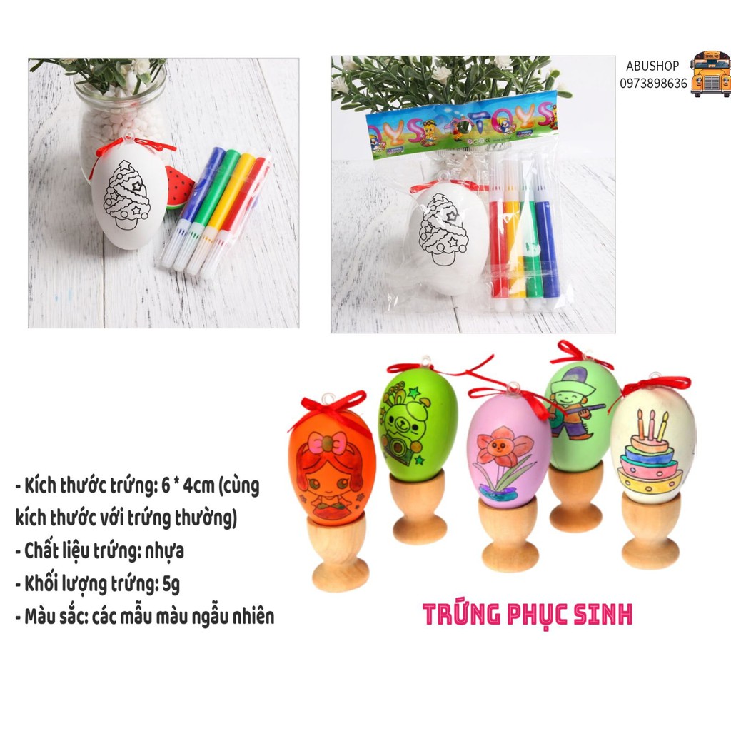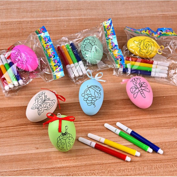 - Bộ đồ chơi trứng tô màu gồm các quả trứng nhiều màu sắc khác nhau, để giúp bé nhận biết và phân biệt màu sắc. Ngoài ra bộ đồ chơi giáo dục thông minh này còn được in hình các nhân vật, con vật đáng yêu để bé có thể nhận biết và phối hợp các màu cho các con vật một cách hợp lý qua sự hướng dẫn của ba mẹ. Khi tô xong bố mẹ có thể dùng các sợi dây kim tuyến treo các quả trứng được bé tô màu trong phòng để lưu lại những kỷ niệm tuổi thơ của bé.