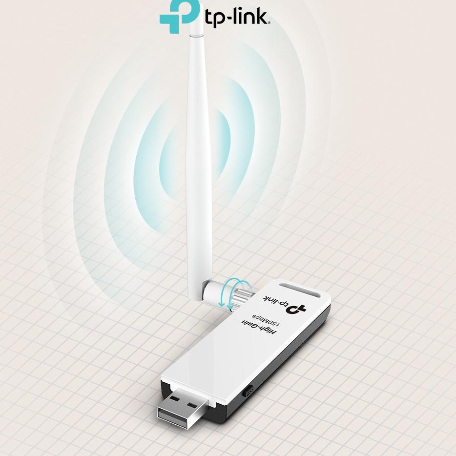 - Mã hóa bảo mật không dây dễUSB Wifi (high gain) TP-LINK TL-WN722N hỗ trợ người dùng cài đặt các máy tính hoặc máy tính xách tay ở vị trí thuận tiện nhất có sẵn, mà không cần phải có dây cáp mạng. Sản phẩm tương thích với các thiết bị theo chuẩn 802.11b/g/n, thiết bị cung cấp tốc độ không dây lên đến 150Mbps, tuyệt vời hơn cho việc chơi game trực tuyến hoặc thậm chí cả các dòng video.