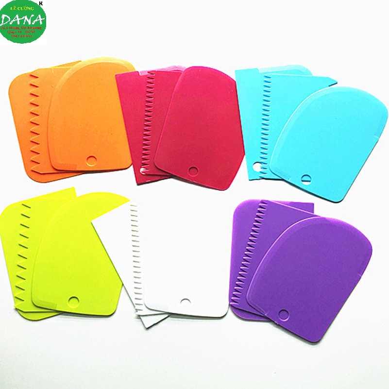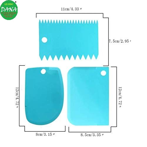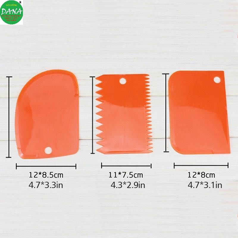 Vét bột bộ 3 cái gồm : 1 vét bo tròn , 1 vét răng cưa 2 đầu , 1 vét hình chữa nhậtKích thước : 11 cm x 8 cm .