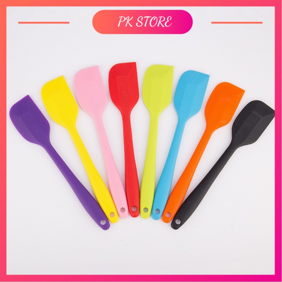 - Spatula màu sắc 26cm được làm từ chất liệu silicon với độ dẻo cao, sức chịu nhiệt lớn (chịu được nhiệt độ -40 độ C đến 230 độ C), chống dính tốt, linh hoạt hơn bất kì các loại thìa, môi khi muốn làm các loại bánh khác nhau. Với chất liệu này cũng rất dễ dàng cho việc vệ sinh sau sử dụng.