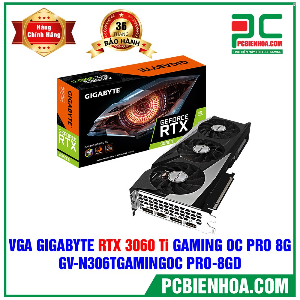 VGA - Card màn hình GIGABYTE GeForce RTX 3060 Ti LHR GAMING OC PRO 8G (GV-N306TGAMINGOC PRO-8GD) chính hãng