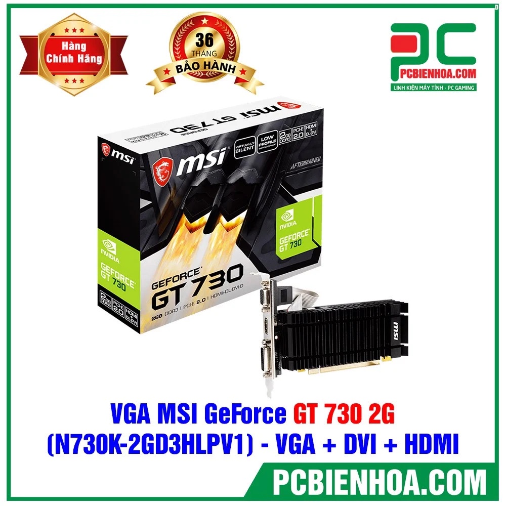 Máy tính & Laptop > Linh Kiện Máy Tính > VGA - Card Màn Hình || VGA- card màn hình MSI GEFORCE GT 730 2G ( N730K-2GD3H/LPV1 ) ( VGA + DVI + HDMI ) 36TCòn hàng