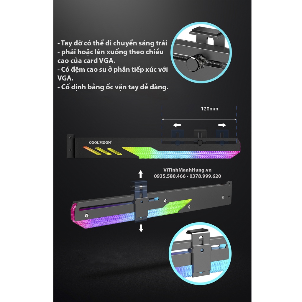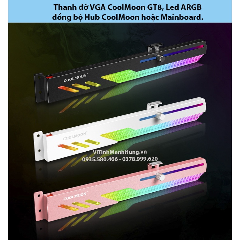 Máy tính & Laptop > Linh Kiện Máy Tính > Quạt và Tản Nhiệt || Thanh đỡ VGA CoolMoon GT8, Led ARGB, đồng bộ Hub CoolMoon hoặc Mainboard.Còn hàng