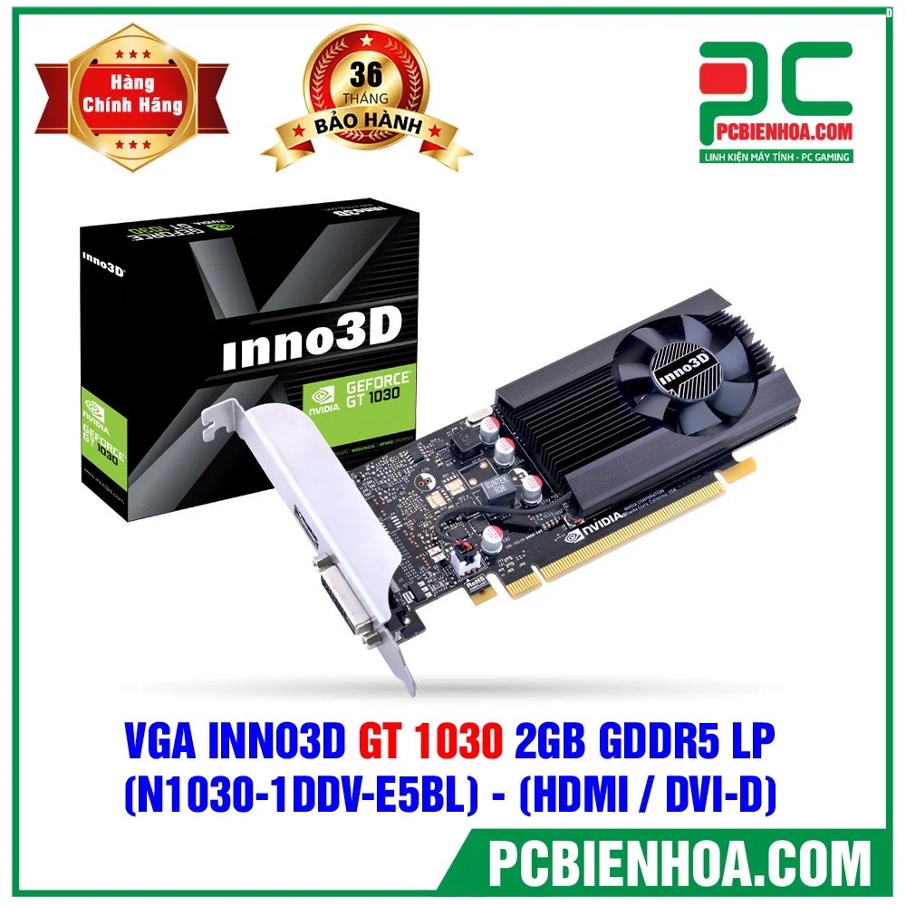 Máy tính & Laptop > Linh Kiện Máy Tính > VGA - Card Màn Hình || VGA INNO3D GEFORCE GT 1030 2GB GDDR5 LP ( N1030-1DDV-E5BL ) ( HDMI / DVI-D )Còn hàng