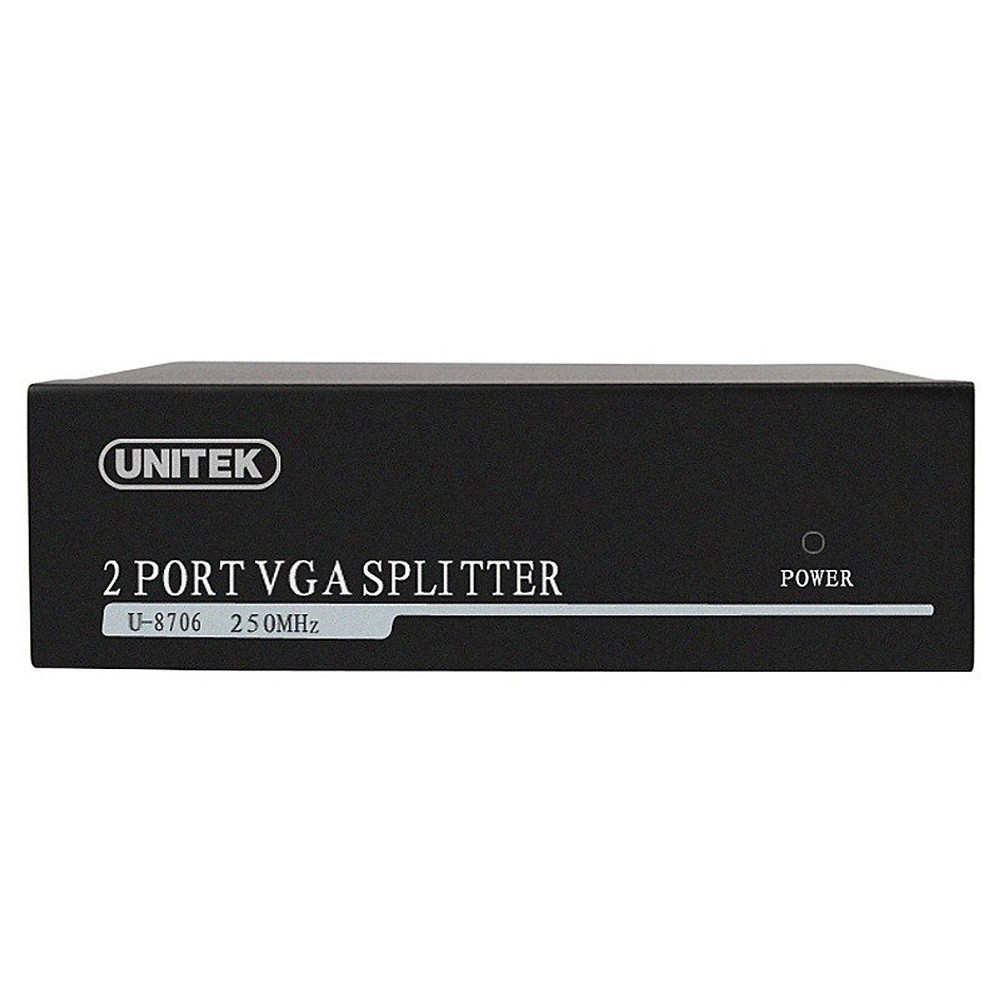 THÔNG TIN SẢN PHẨM- Bộ chia tín hiệu VGA 2Port Unitek 8706 Chia 1 máy tính ra 2 màn hình hiển thị chủ yếu được sử dụng trong phương tiện giảng dạy cơ thể, hội nghị truyền hình, ... với độ phân giải Full HD 1080 P (1920 x 1440)