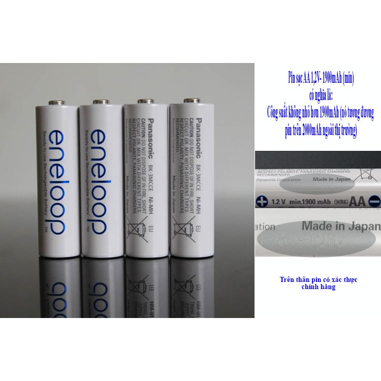 + Pin sạc AA Pa_nasonic eneloop tiêu chuẩn : min 1900 mAh