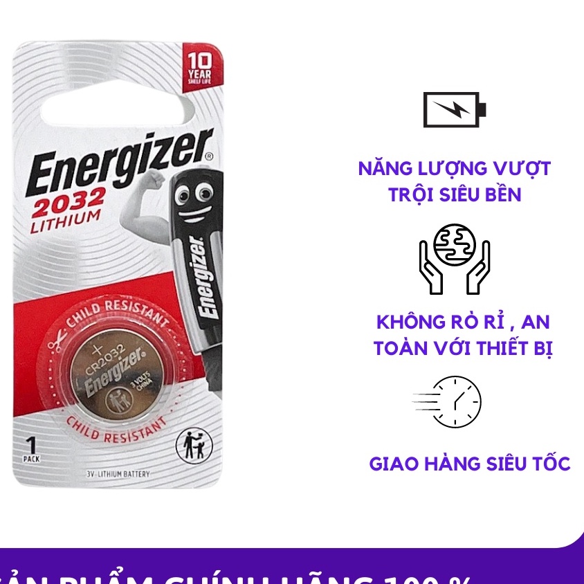Đặc tính sản phẩm Vỉ 1 Viên Pin CR2032 Energizer Lithium 3V - Hàng Chính Hãng