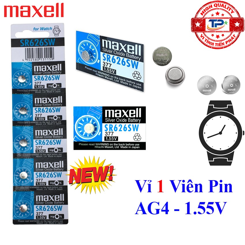 Cameras & Flycam > Phụ kiện máy ảnh > Bộ sạc pin || Vỉ 1 viên Pin đồng hồ đeo tay AG4 / LR66 / LR626 / SR626SW /377 Maxell Sliver Oxide battery 1.55V - Pin nút áoCòn hàng