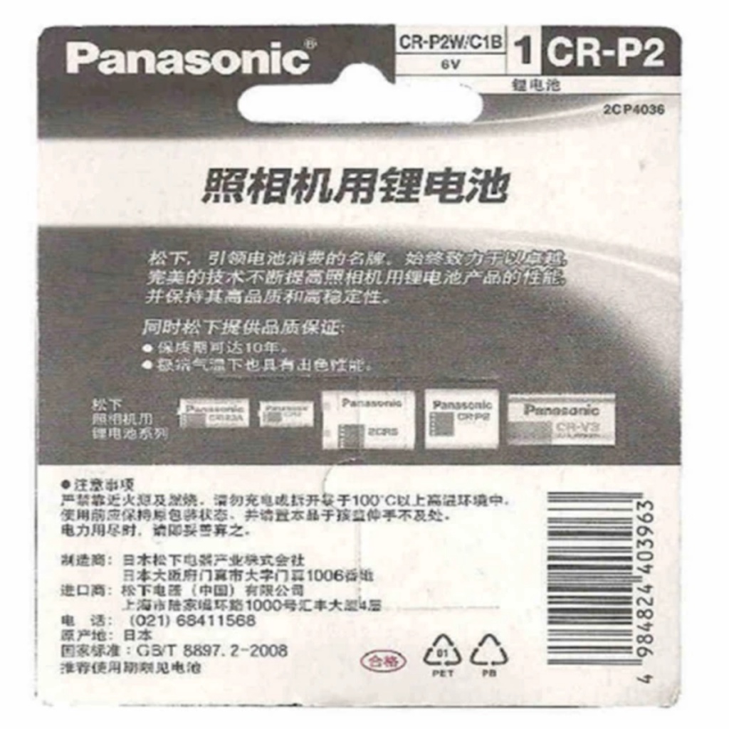 - Loại Pin: Lithium CR P2, không sạc được- Thương hiệu: Panasonic
