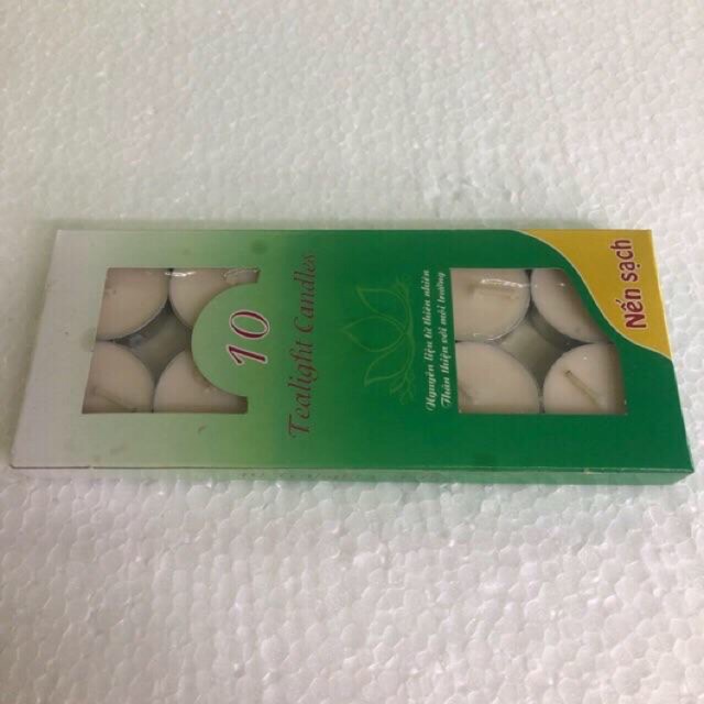 NẾN ĐỐT TINH DẦU (hộp 10 viên)Nến Tealight đốt tinh dầu có dạng viên tròn, nhỏ gọn. Khi cháy không khói, không mùi và thời gian cháy từ 4 giờ liên tục. Thích hợp dùng đốt tinh dầu để xông hương trong Spa. nhà hàng, khách sạn, quán cà phê hay gia đình,....