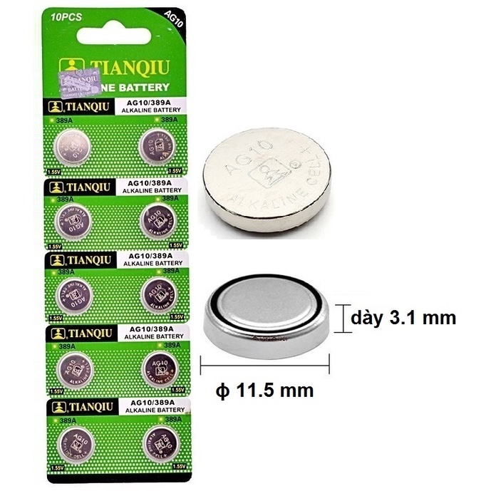 - Loại pin : Pin Alkaline 1.5V- Code : AG10, LR1130