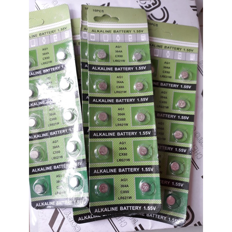 VỈ 10 VIÊN PIN CÚC ÁO AG1 DÙNG CHO ĐỒNG HỒ ĐEO TAY, MÁY TÍNH, MÁY ẢNH MINI,… LOẠI TỐT 1.55VDòng pin LR621 hay AG1 là dòng pin alkaline thuộc dòng pin khô nhỏ được sử dụng trong các sản phẩm điện tử có kích thước nhỏ gọn, chủ yếu có thể cầm trên tay một cách dễ dàng!