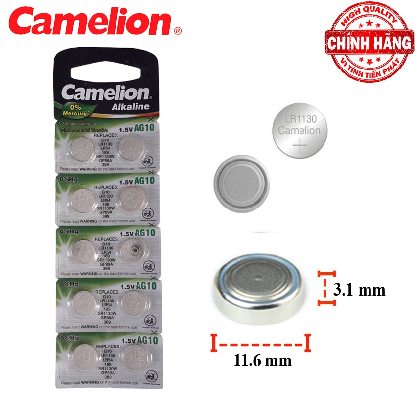 Vỉ 10 viên Pin nút AG10 / LR1130 / LR54 Camelion Alkaline 1.5v (mẫu mới)