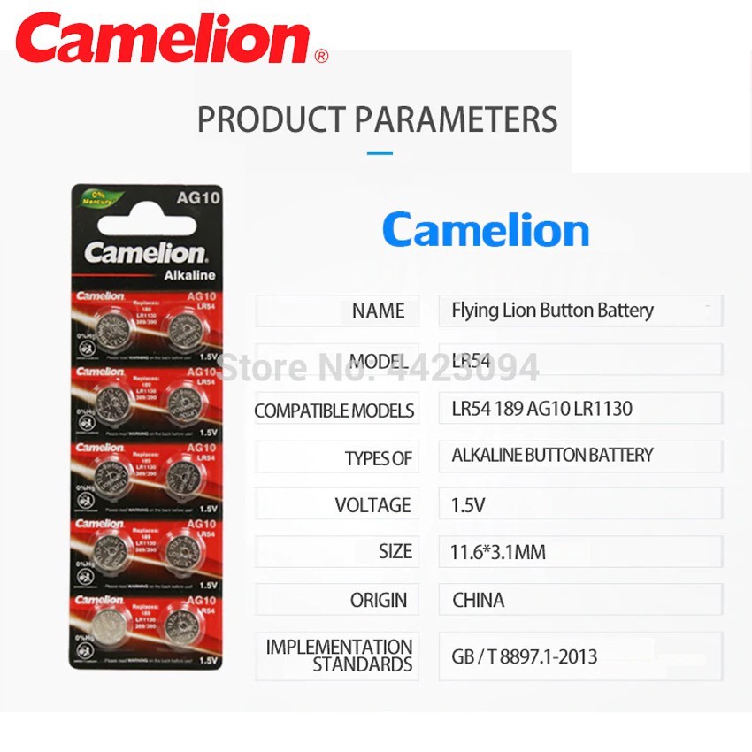 Máy tính & Laptop > Linh Kiện Máy Tính > Khác || Vỉ 10 viên Pin nút AG10 / LR1130 / LR54 Camelion Alkaline 1.5 V (mẫu mới) SR1130W / 389 / 189 / 626Còn hàng
