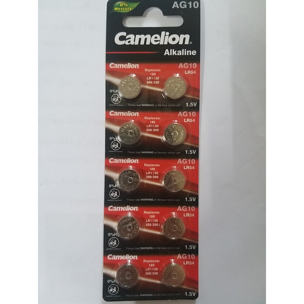 Vỉ 10 viên Pin nút AG10 / LR1130 / LR54 Camelion Alkaline 1.5 V (mẫu mới) SR1130W / 389 / 189 / 626