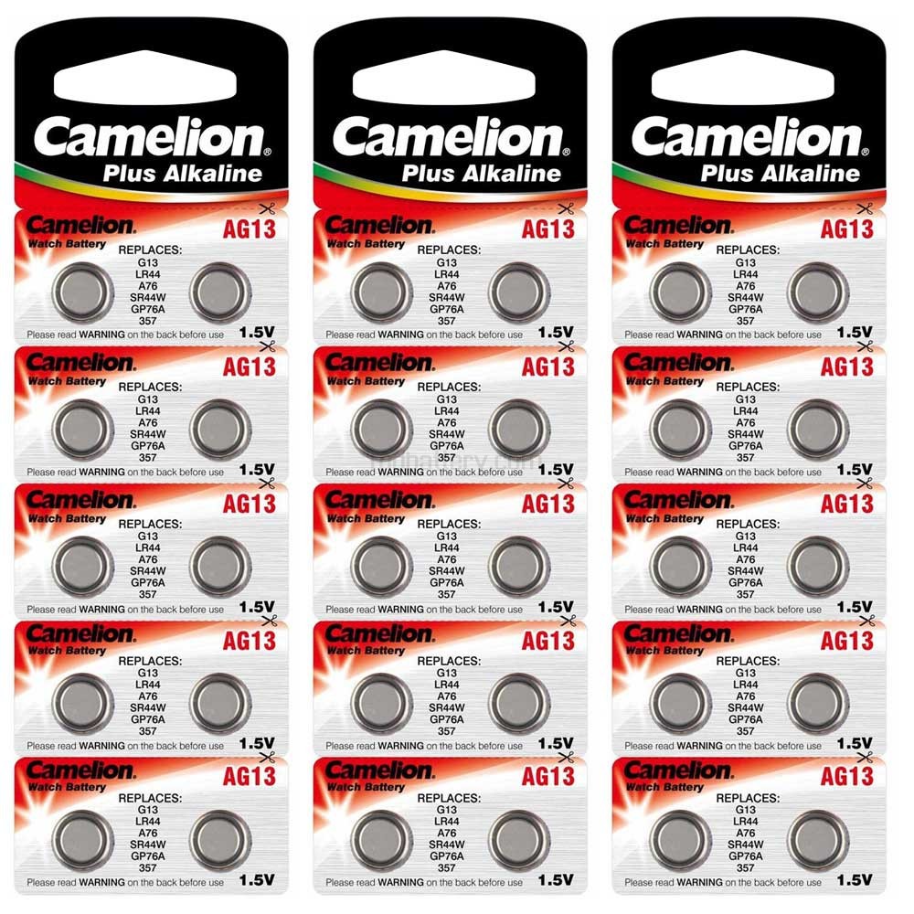 Vỉ 10 viên pin nút áo 1.5V Camelion AG13, LR44, A76, SR44W, GP76A, 357 L1154F L1154 cho điện thoại, đồng hồ, máy tính, đ- Loại pin : Pin cúc áo alkaline