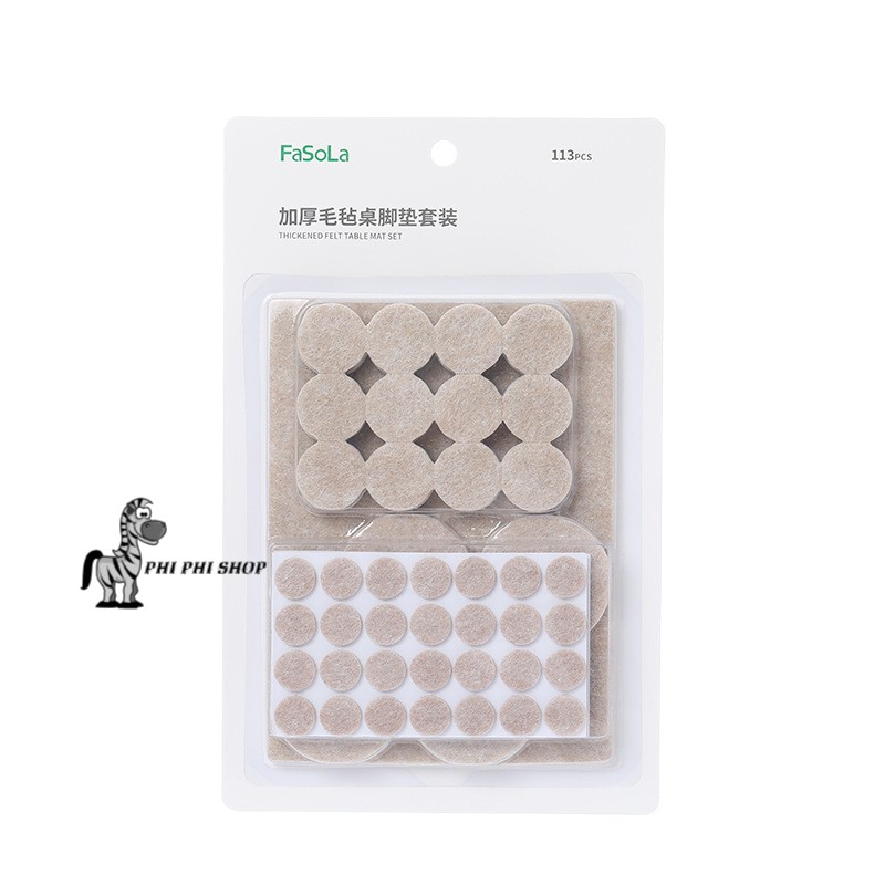Giới thiệu Vĩ 113 miếng lót chân ghế chân bàn bằng nỉ dày 5mm chống trượt tránh trầy xước sàn nhà Fasola PS-235