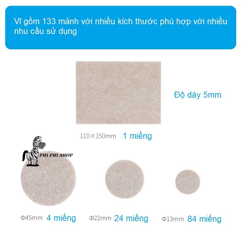 Vĩ 113 miếng lót chân ghế chân bàn bằng nỉ dày 5mm chống trượt tránh trầy xước sàn nhà Fasola PS-235
