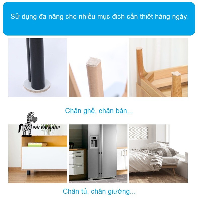 Sử dụng đa năng cho các mục đích: lót chân bàn, chân ghế, chân tủ, chân giường...
