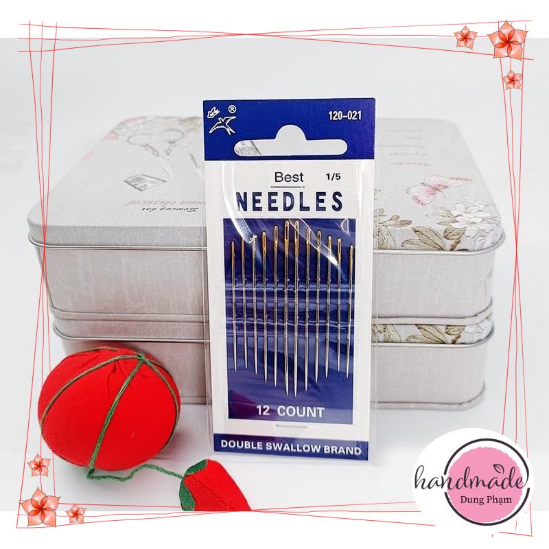 Giới thiệu Vỉ 12 Kim đầu nhọn thêu vải / Kim dài từ 3.6cm _ 5cm. Lỗ xỏ chỉ từ 2 sợi _ 5 sợi . MS 021.