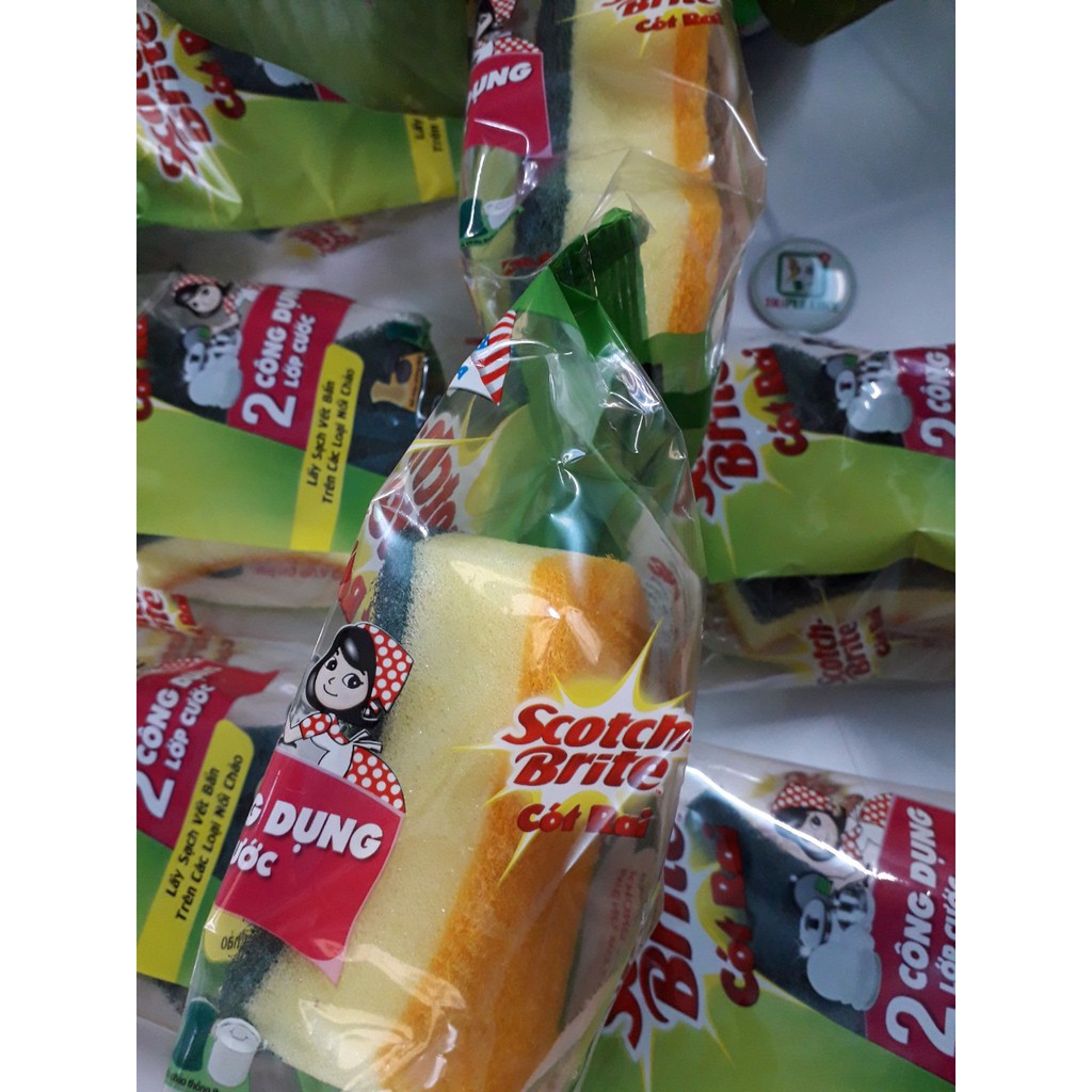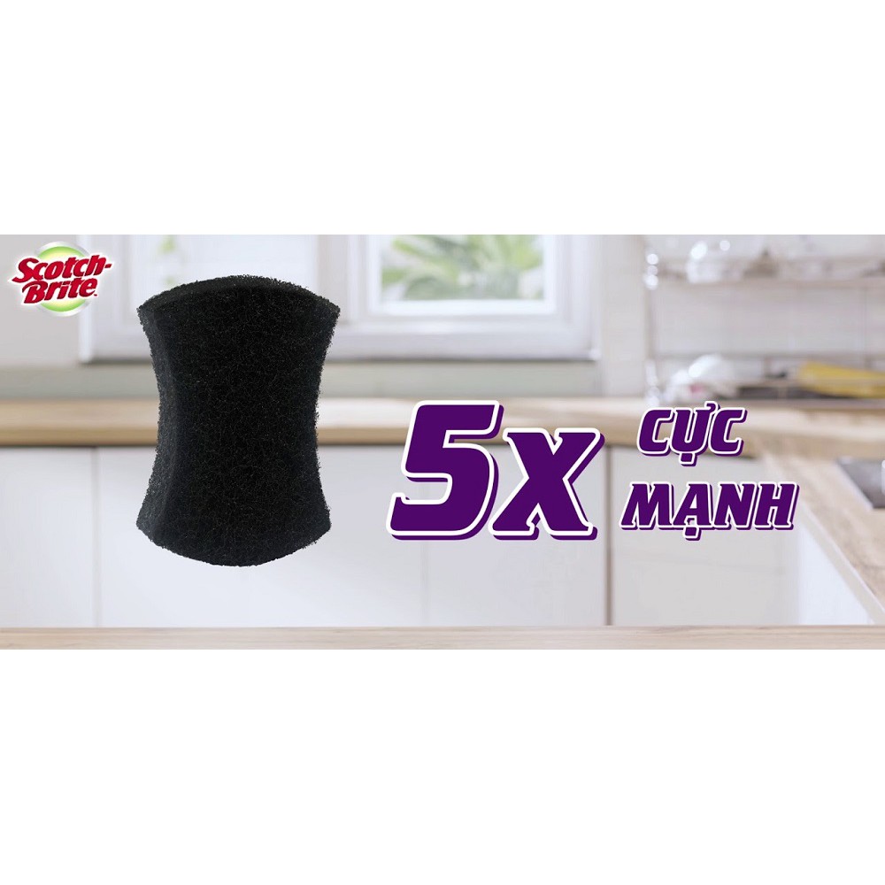 ✨✨Mô tả: Cước cọ rửa cực mạnh Scotch Brite 3M Siêu sạch có mút 3X - 2 mặt - 5X Vỉ 12 Miếng