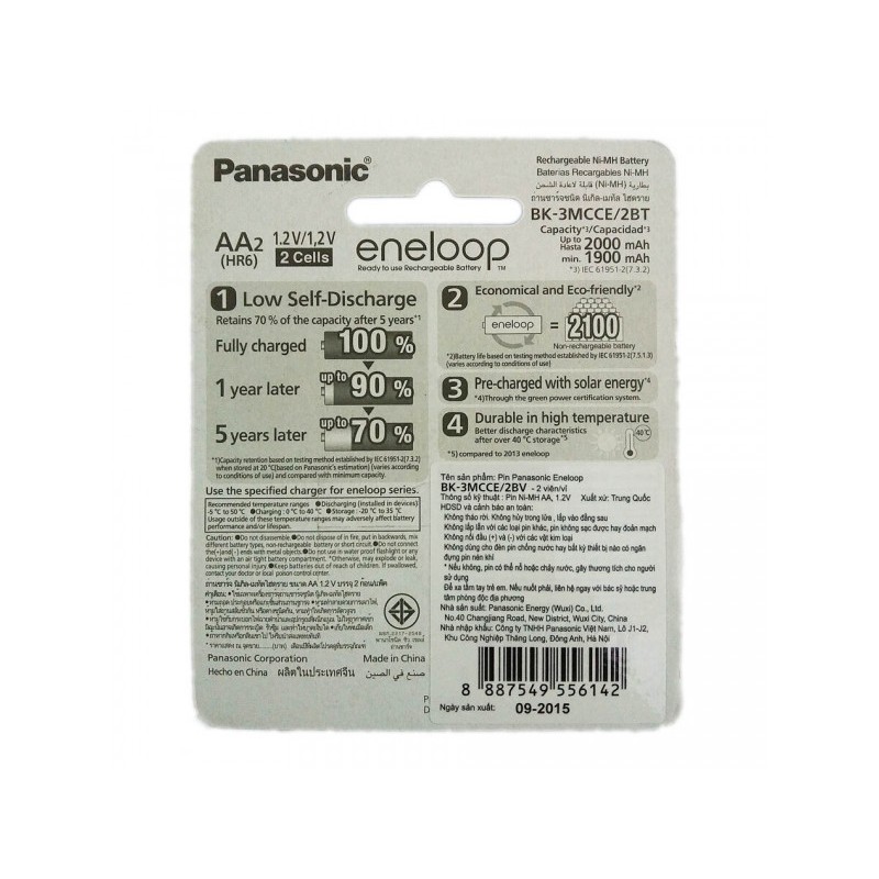 Nhằm tiết kiệm chi phí và thay thế cho những loại pin AA chỉ sử dụng một lần, PANASONIC đã cho ra đời loại Pin sạc AA Panasonic- Eneloop- 2000 mAh (BK - 3MCCE ) cho thời gian sử dụng lâu hơn. Pin đáp ứng nhu cầu sử dụng năng lượng cao của giới chuyên nghiệp (máy ảnh, điện thoại bàn, đèn flash, máy đo huyết áp…). Pin sạc AA Panasonic- Eneloop- 2000 mAh (BK - 3MCCE ) chính là lựa chọn hợp lý cho bạn khi cần một nguồn cung cấp năng lượng mạnh và ổn định cho các thiết bị của mình.