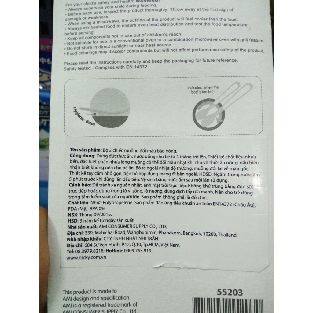 Nhựa bền, đặc biệt phần nhựa long muỗng có thể đổi màu nhạt khi thức ăn nóng quá, không nên cho bé ăn.