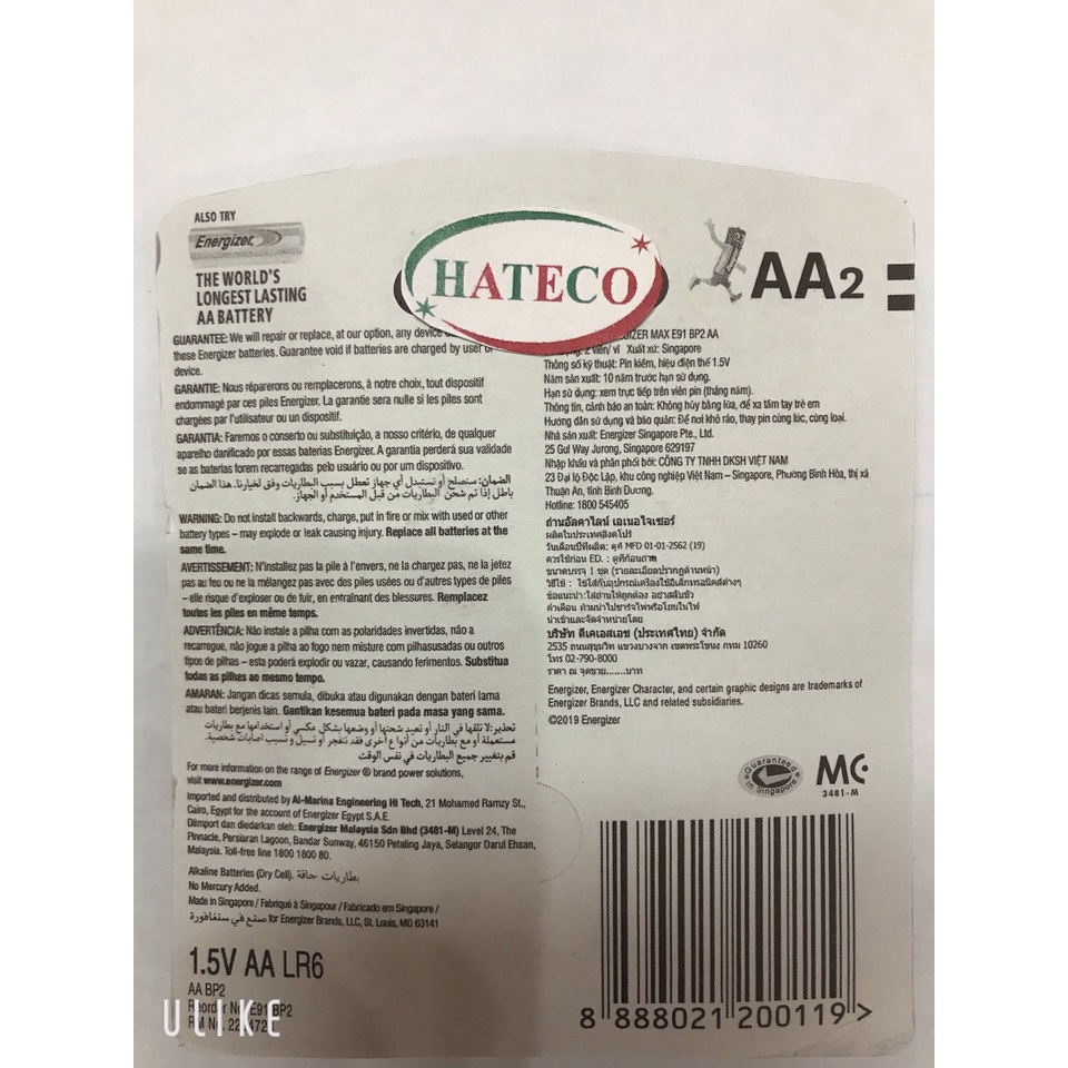 - Pin đũa Energizer AAA LR3 Alkaline 1.5V vỉ 2 viên