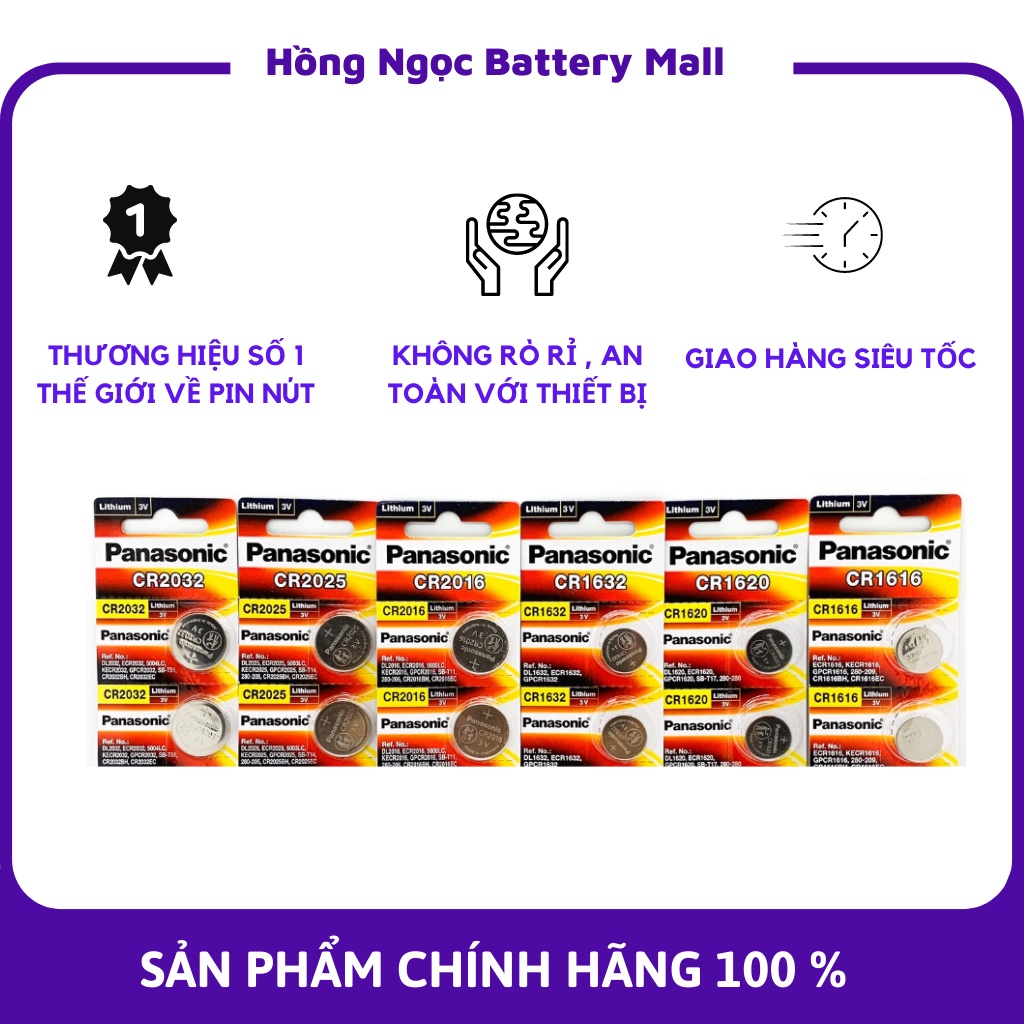 Vỉ 2 Viên Pin Panasonic CR2032 / CR2025 /CR2016 / CR1632 / CR1620 / CR1616 / CR1220 / CR1216 / CR2450 / CR2430 / LR44