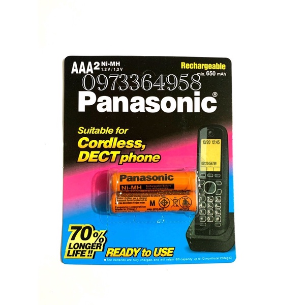 Pin Sạc AAA Panasonic dùng cho các dòng điện thoại không dây và các dòng điện thoại hiển thị màn hình, Là sản phẩm pin sạc Panasonic, sản phẩm được sản xuất trên dây chuyền công nghệ Nhật Bản.