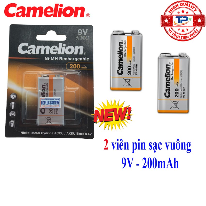 Số lượng: Vỉ 2 viên pin sạc vuông 9V dung lượng 200mAhThương hiệu: Camelion của Đức