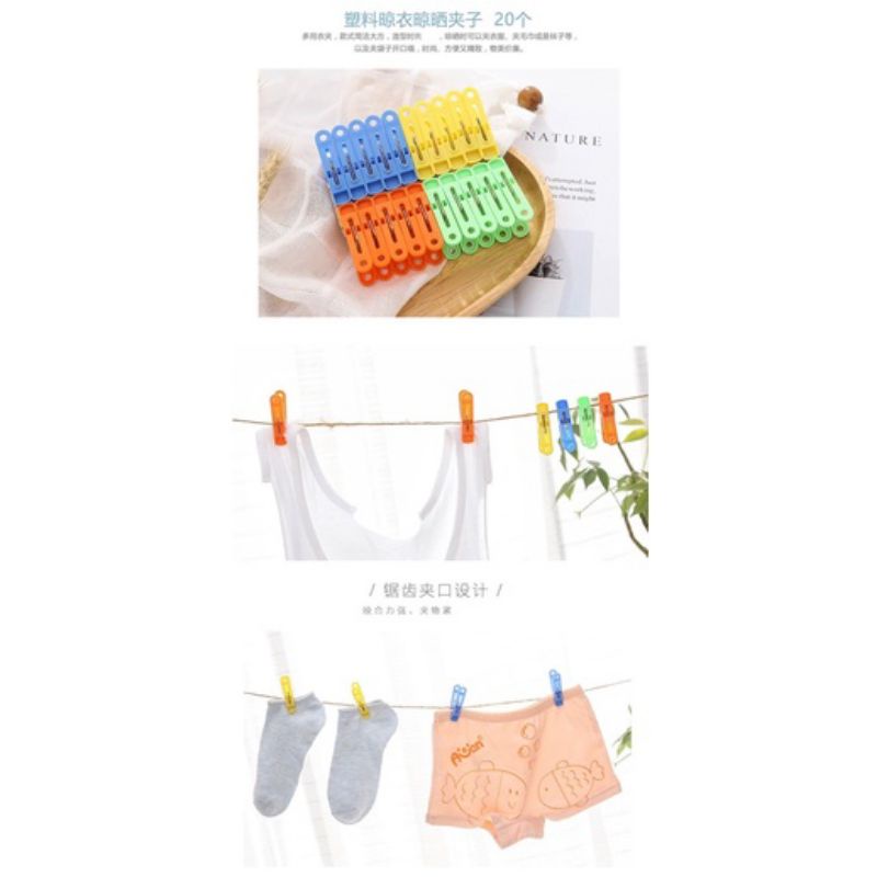 Giới thiệu Vỉ 20 cái kẹp quần áo nhựa bản to, dày đẹp - Smart House