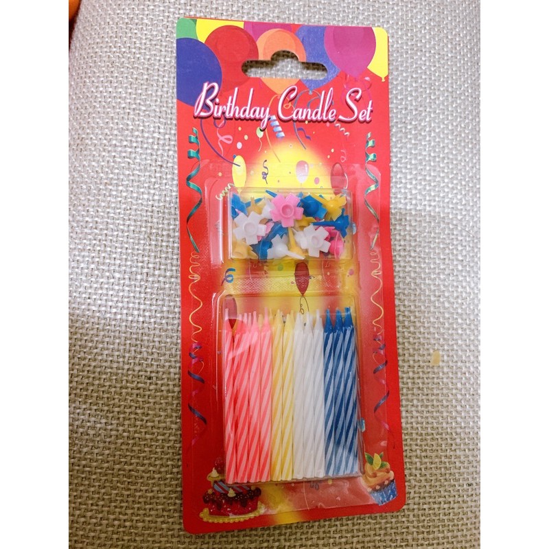 Nhà cửa & Đời sống > Trang trí nhà cửa > Nến & đồ đựng nến || Vỉ 24 cây nến xoắn, nến chân, nến tăm sinh nhậtCòn hàng