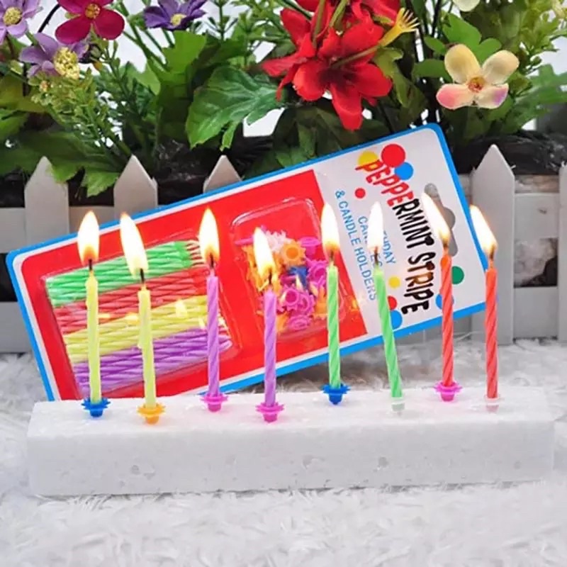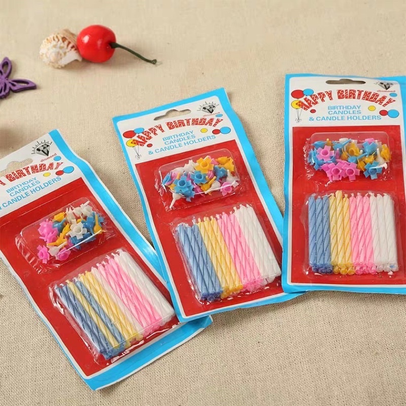 Vỉ 24 nến xoắn kèm chân cắm bánh sinh nhật