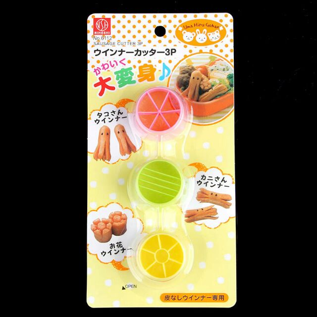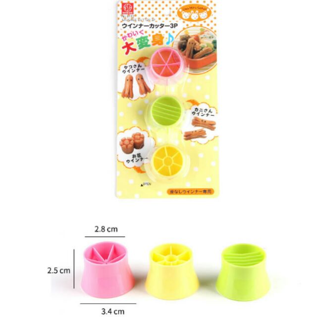 Bộ 3 dụng cụ cắt tạo hình xúc xích Niheshi 6112 hàng Nhật(Bộ gồm 3 dụng cụ xanh lá, hồng, vàng cắt tạo 3 hình khác nhau)