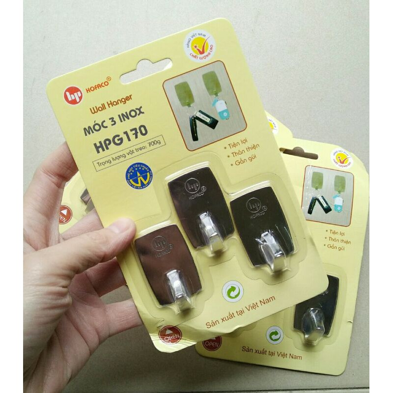 Nhà cửa & Đời sống > Sắp xếp nhà cửa > Mắc áo || Vỉ 3 móc inox Hofaco HPG170Còn hàng