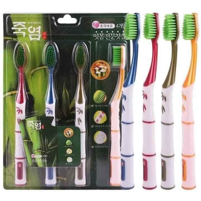 Nhà cửa & Đời sống > Đồ dùng phòng tắm > Kệ đựng bàn chải, kệ nhả kem đánh răng || Vỉ 4 bàn chải thân trúc siêu mềmCòn hàng
