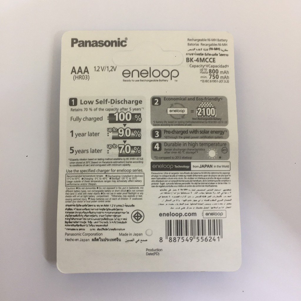 Cameras & Flycam > Phụ kiện máy ảnh > Đế pin || Vỉ 4 pin AAA ( pin đũa sạc ) eneloop 800mAh BK -4MCCECòn hàng